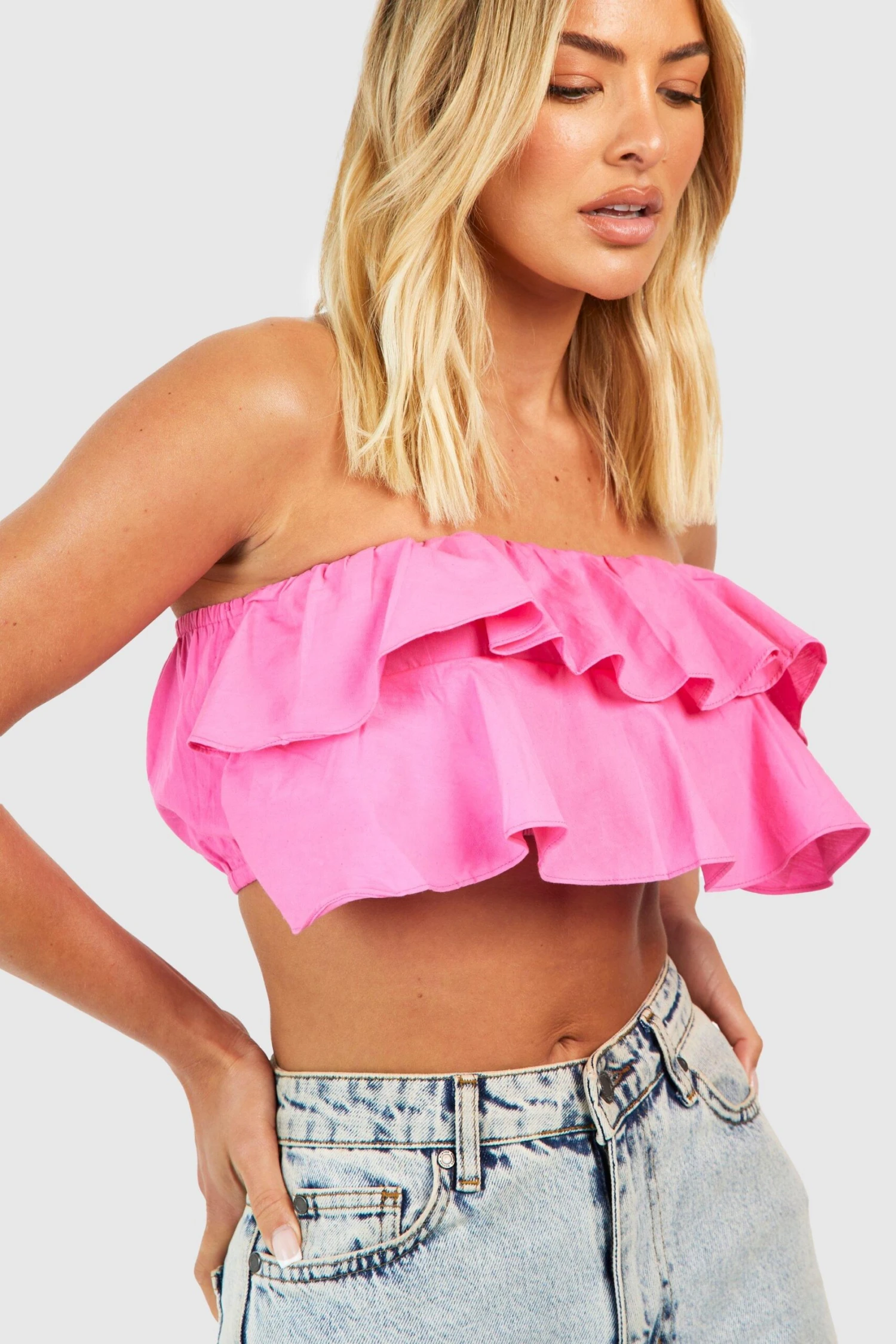 Mood : s’habiller comme si c’Ă©tait l’Ă©tĂ© de toutes les tentations. Ce haut bandeau confortable et sans bretelles est un must pour toute vĂ©ritable garde-robe estivale. Avec sa matière extensible et sa coupe moulante, il mettra votre poitrine en valeur et donnera un effet glam maximal avec un effort minimal. CrĂ©ez le combo dĂ©contractĂ© parfait avec un simple top bandeau et votre jean mom prĂ©fĂ©rĂ© ou ajoutez un blazer oversize et un pantalon taille haute pour un look au top de l’Ă©lĂ©gance. Les possibilitĂ©s de superposition et de style sont infinies.