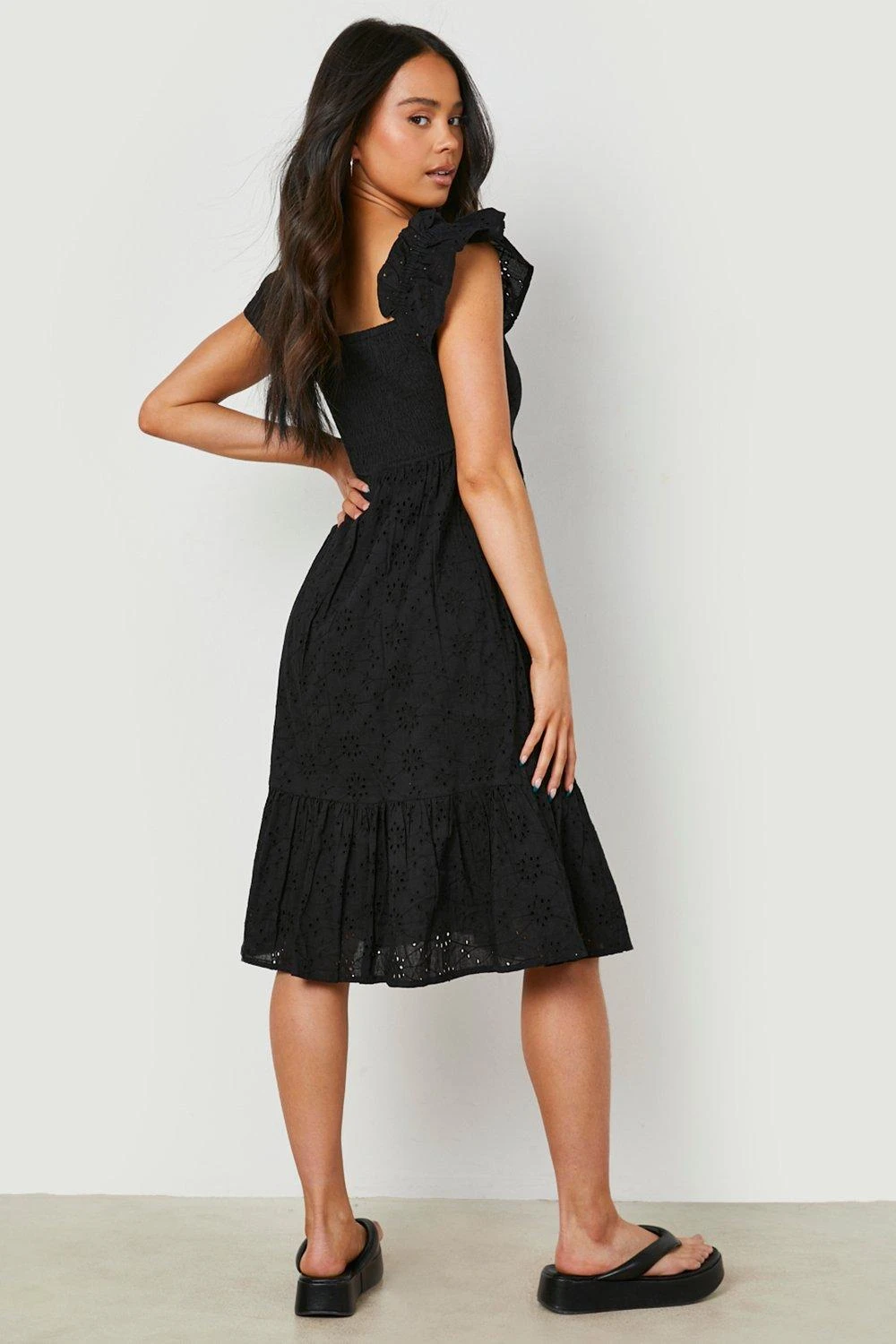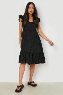 Petite – Robe Mi-longue En Broderie Anglaise Ă Col Bateau Et Manches Bouffantes